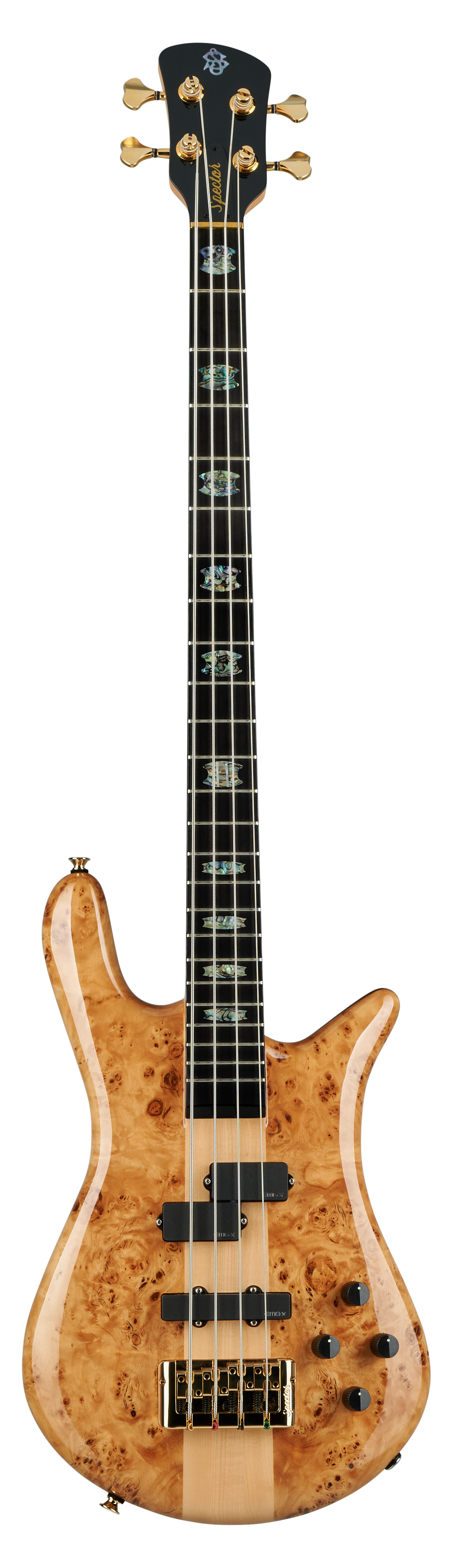Diese Bässe sind mit einem leichten Aluminiumsteg für eine präzise und zuverlässige Intonation ausgestattet. Hochwertige aktive Tonabnehmer der EMG X-Serie liefern die außergewöhnliche Klarheit, den knallharten Attack und den geräuschlosen Betrieb, die den SPECTOR-Sound ausmachen.
