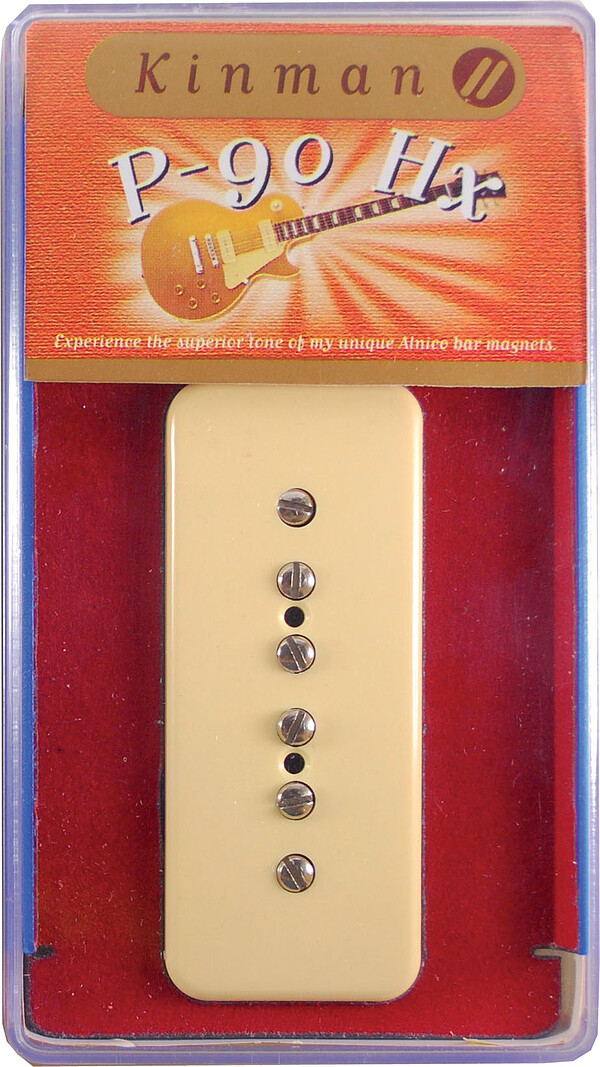 Chris Kinman's P-90 Hx orientiert sich stark an den Vorgängern aus den frühen 60er Jahren und bietet dazu viele Vorteile. Das lästige 60Hz- Brummen konnte vollständig gebannt werden. Der P-90 Hx ist extrem leise, und dies bei unveränderter Ausgangsleistung ! Normale P-90 bestehen aus etwa 13 Bauteilen. Der Kinman P-90 Hx verwendet über 200 !