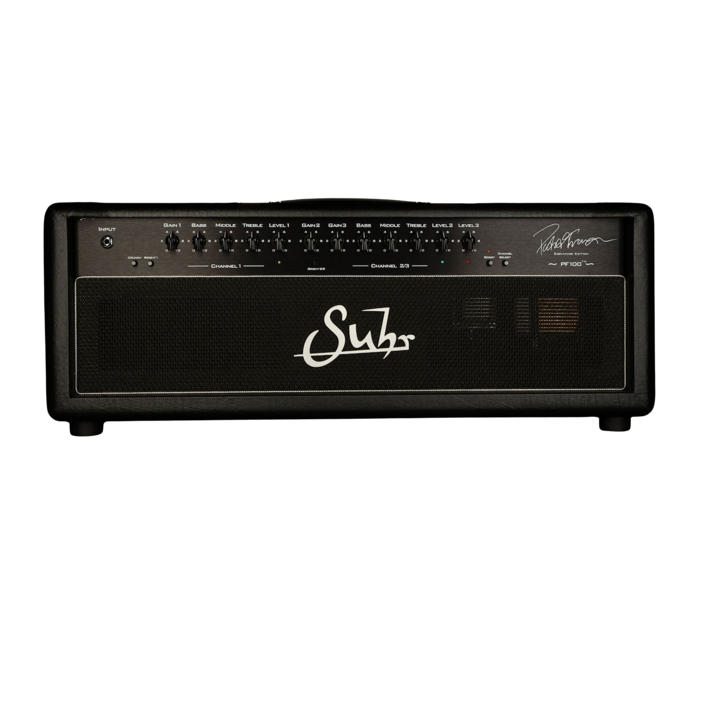 When John built Peter's guitars all those years ago, it marked the start of a creative partnership grounded in tone, feel, and musicality. Now, that legacy continues with the Suhr PF100 - a 3-channel, 100W amp built upon the beloved foundation of the PT100, celebrated for its rich harmonic sustain, and its articulate clarity that defines modern rock tone.
